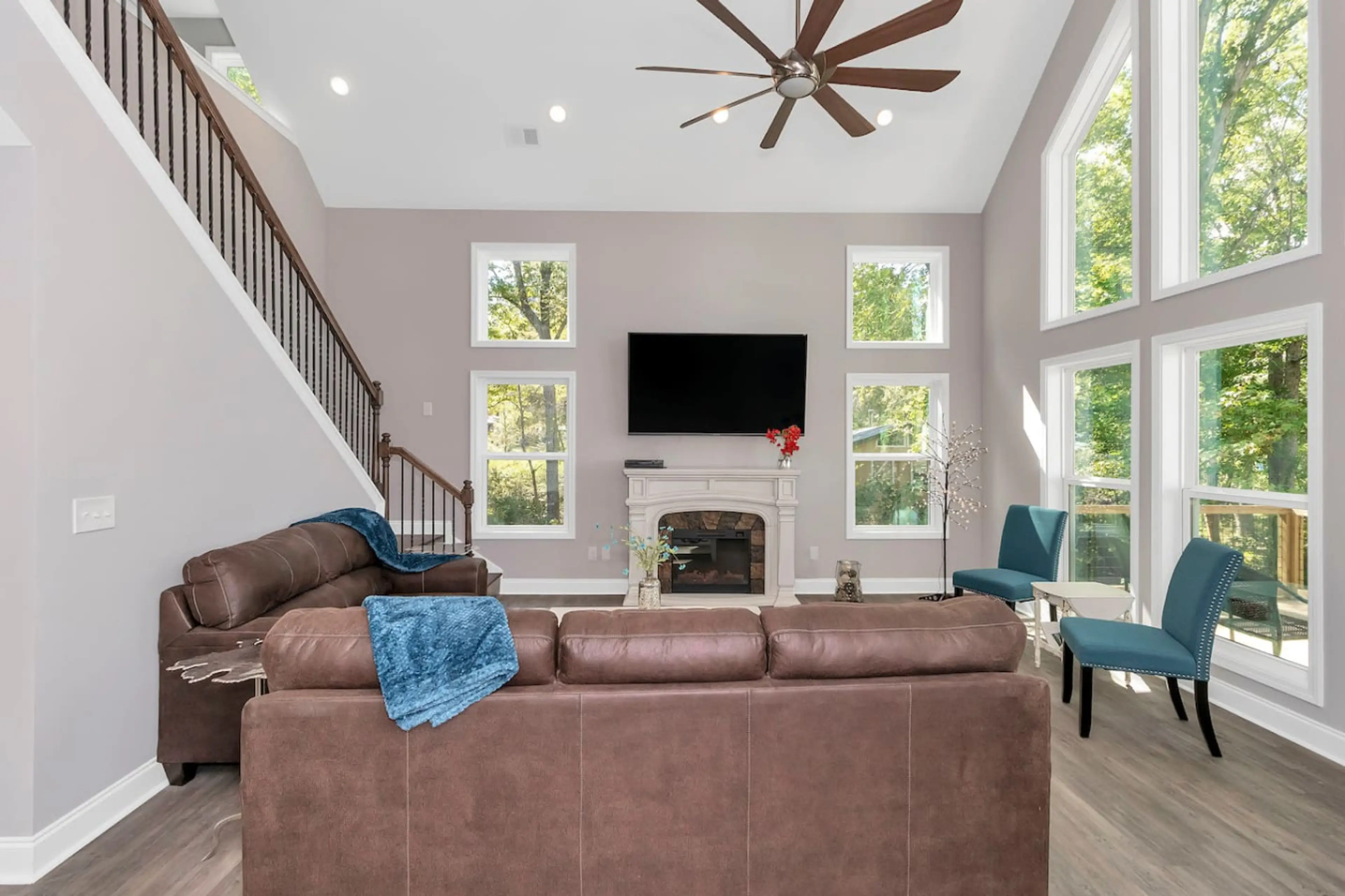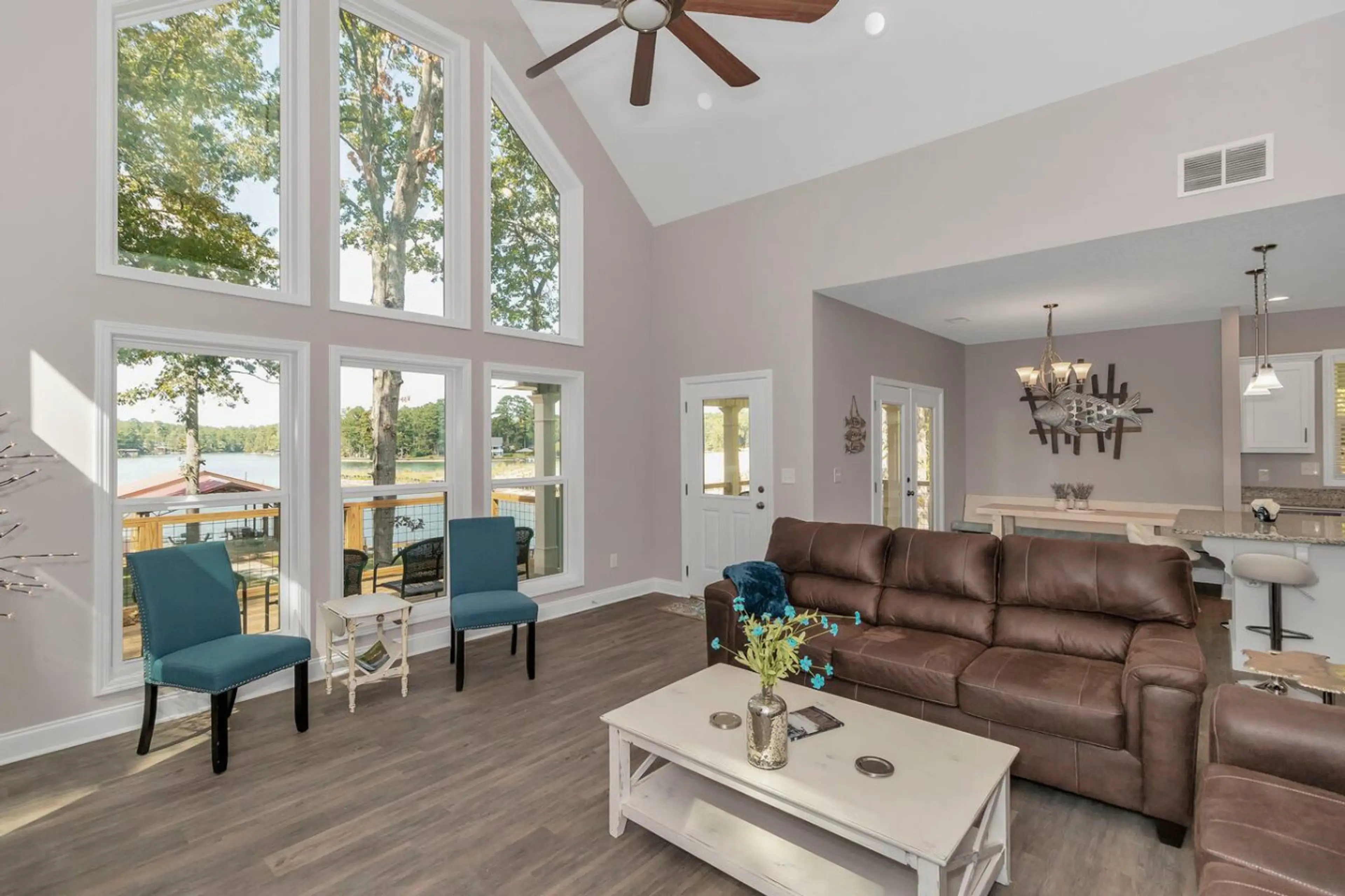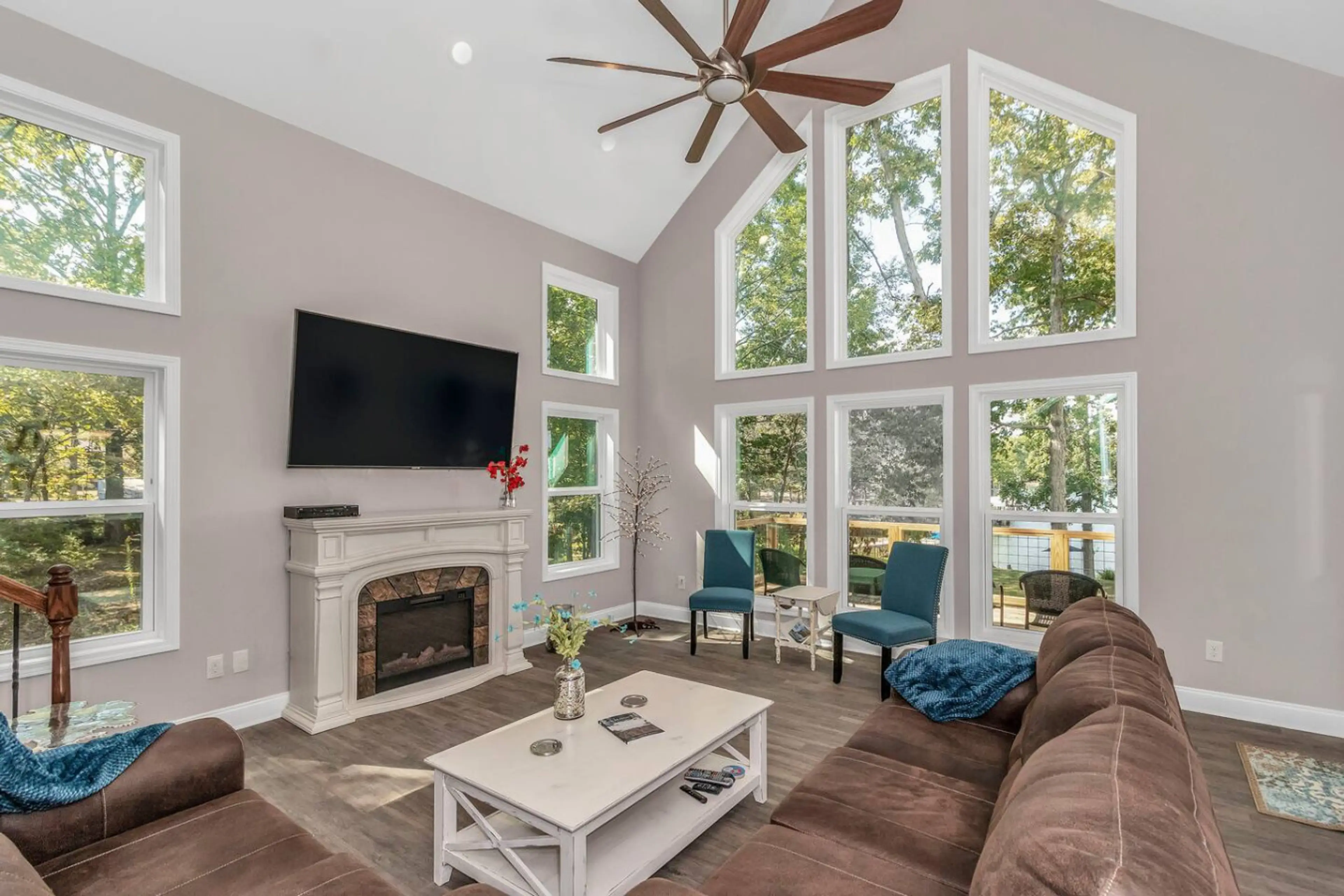 Brand new, 3-story 'Lake Motif' waterfront home with massive decks and porches. Home includes two fully stocked kitchens, 5 beautifully decorated bedrooms each with flatscreen HDTVs, two living areas with an 75-inch and a 65-inch HDTV, a covered boat house with attached pavilion, 2 picnic areas, an...